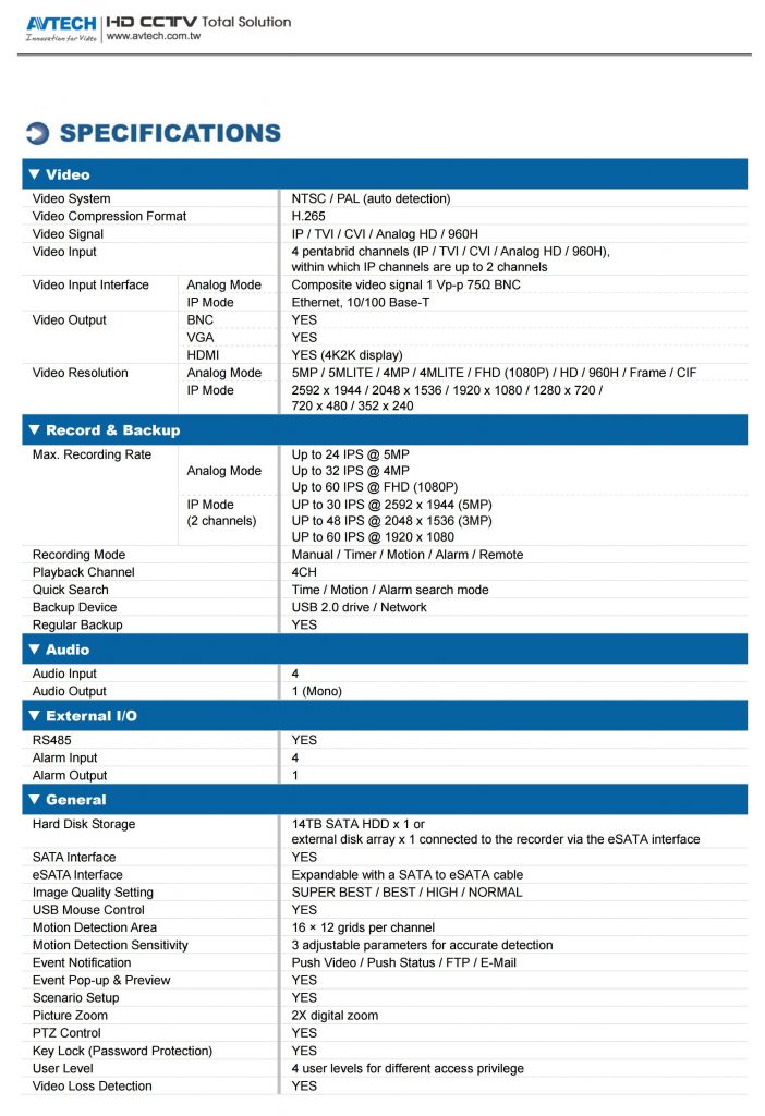 8MP 5-in-1 XVR Recorder Series, AVTECH, HD DVR