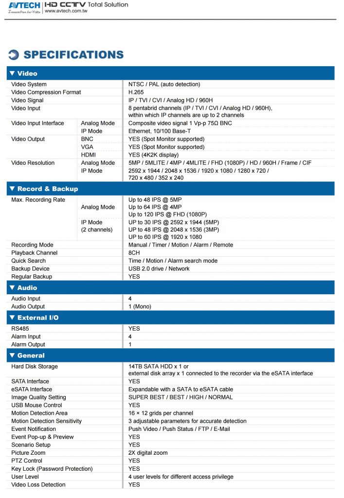 8MP 5-in-1 XVR Recorder Series, AVTECH, HD DVR