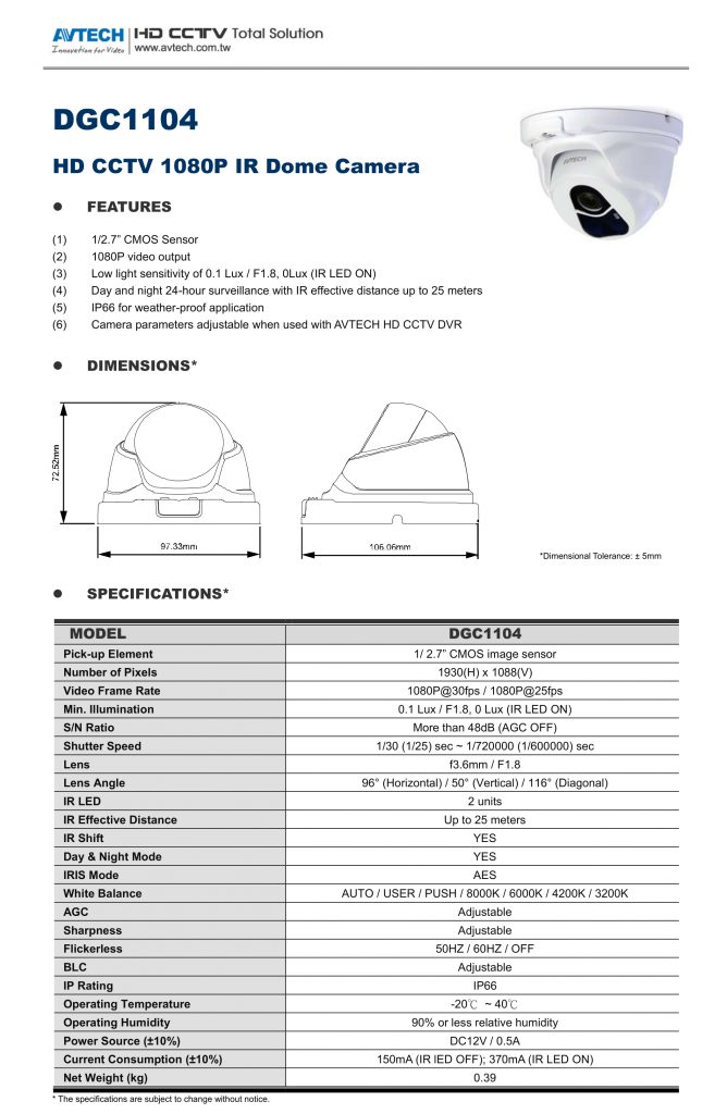 Be the first to review “AVTECH HD TVI CAMERA – DGC1104”