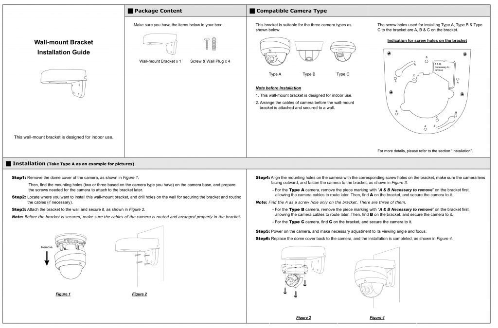 This bracket is used to mount IR dome cameras (such as AVM521A, AVM532 and AVM542) on walls.