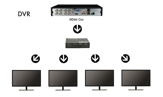 - Duplicates one HDMI source to 4 displays