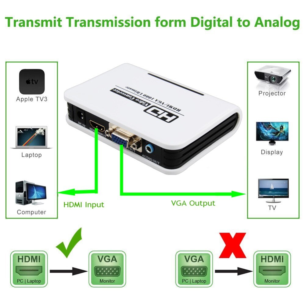Tomsenn HDMI to VGA Converter enables you to connect your new NoteBook, Laptop, Apple TV, Chromebook, Rasberry Pi,HD DV with HDMI interface to projector, LCD, TV & Monitor with VGA interface for big screen viewing. It support resolution up to 1920×1080 @60Hz,and provids with a 3.5mm audio line-out jack, which allows you to enjoy audio and video simultaneously.